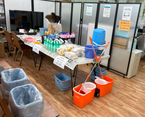 ➀回覧で案内した大掃除用具置き場に、16時頃から掃除用具を出しておく。