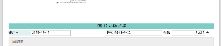 ・申請書下部の総務記入欄に「発注日」「金額」を記載し、「承認」する。