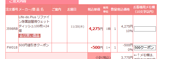お届け時対応 連絡事項 ポイント・クーポンのご利用は基本は空白のまま
