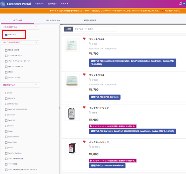 ②1の購入する商品は、お気に入り登録をしているので、そこから対象の商品をかごに入れる。