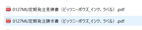 データの名前は、「YYMMMU定期発注見積書(ピッツニーボウズ_購入した商品)とする。