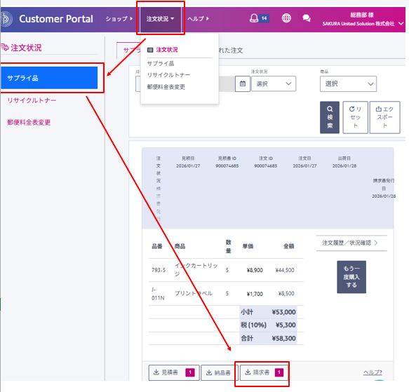 請求書を出力し、物品購入申請に添付する。