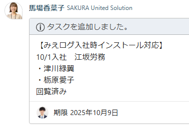 岡宮さんへの辞令の共有&アカウント削除連絡