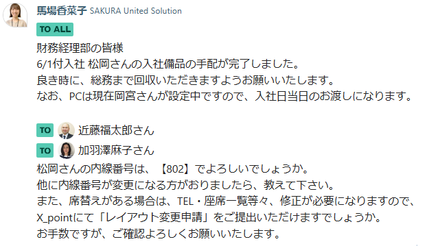 ご確認いただき、最終出勤日までにご対応お願いいたします。