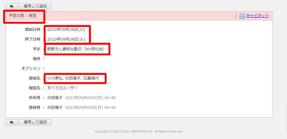 - 予定の色:桃色