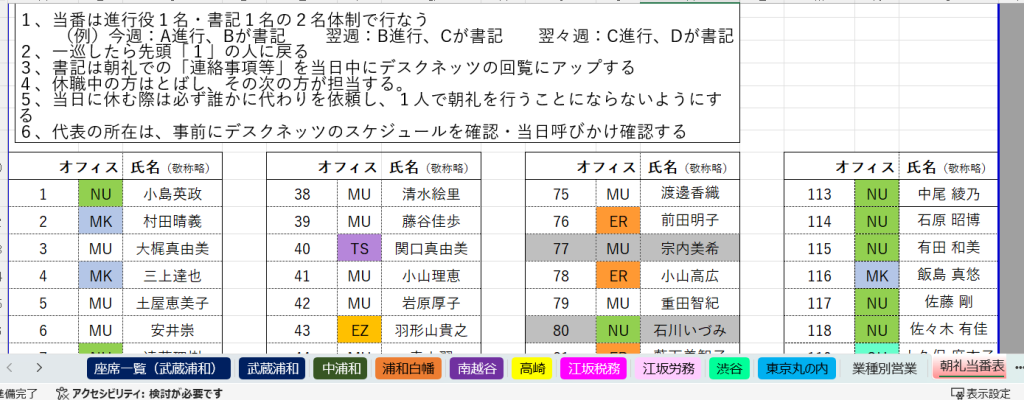 - TEL&座席一覧、朝礼当番、内線表