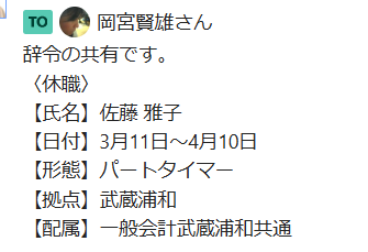 2024.3.14 退職手続きのご案内投下先をグルチャから個チャに変更