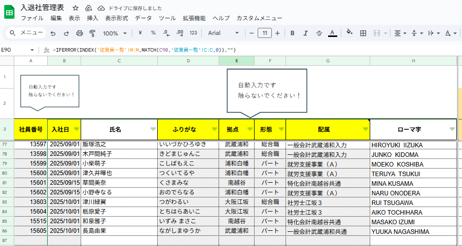 - 入退社管理表への入力