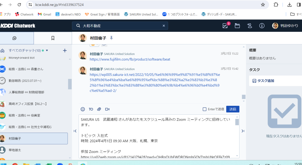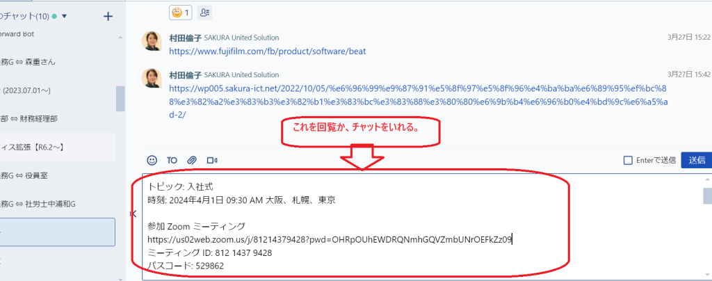 入力したメールアドレスにログインできない場合はチャットワーク「ZOOM用メールアドレス」で検索してみる