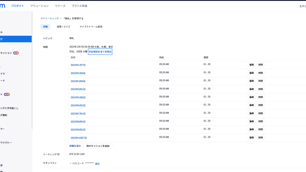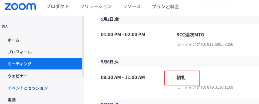 ①Zoomのweb版(アカウント管理とかできるやつ)にログイン