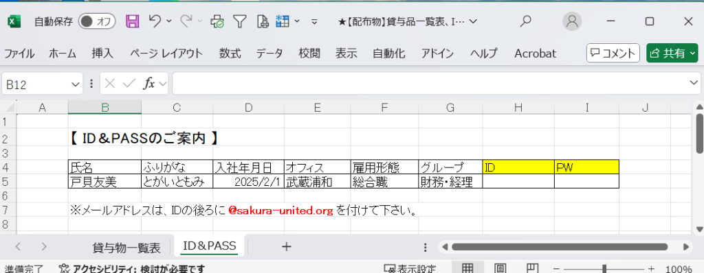 データ:★【配布物】貸与品一覧表、ID&PASS案内
