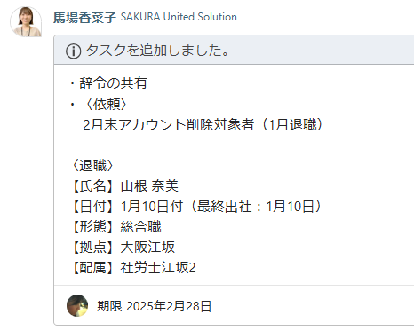 異動情報の共有&デスクネッツアカウント削除