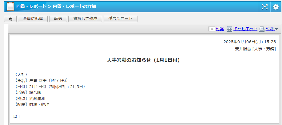 ・辞令の共有