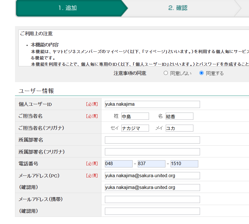 ②個人ユーザー情報管理⇒ユーザー情報追加を選択