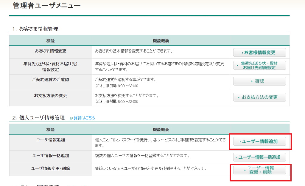 ②個人ユーザー情報管理⇒ユーザー情報変更削除を選択
